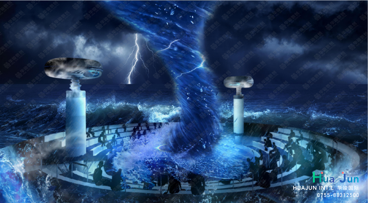 科技海洋-乘風破浪。運用全息投影講解海洋上臺風、海浪、龍卷風等自然的特點,并進行科學講解。大家在座椅上觀看,座椅可以上下、左右轉動,和視頻畫面形成聯動效果。比如臺風分為幾級?會有多大的力量,觀眾在觀看的同時感受臺風的力量,形成沉浸式空間。