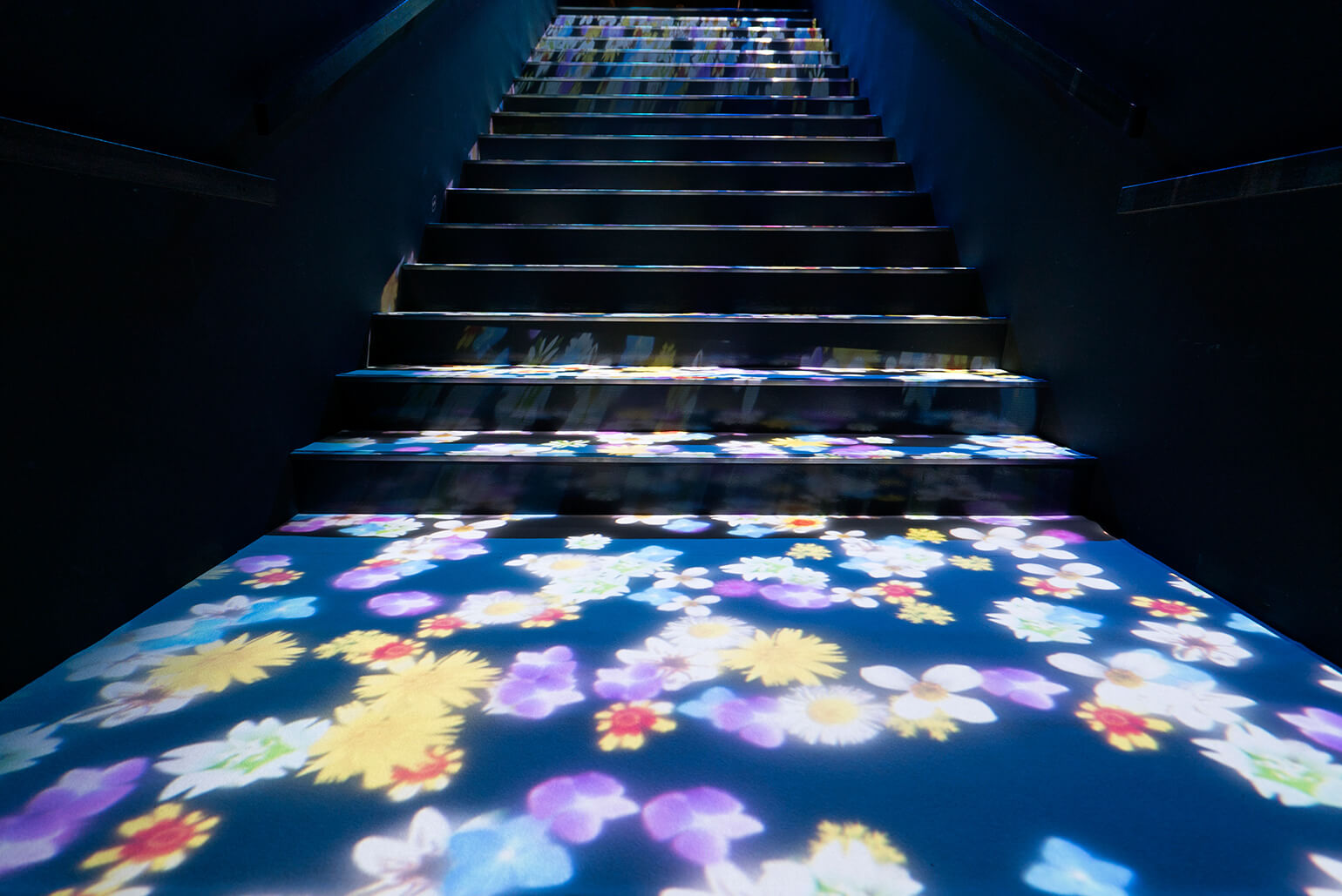 互動地幕是采用先進的計算機視覺技術和投影顯示技術來營造一種奇幻動感的交互體驗體統。當觀眾走過互動區域時,通過視覺系統識別,該觀眾的動作、行為,可以融入制作好的畫面,與之進行實時交互。系統可在觀眾腳下產生各種特效影像,讓觀眾進入一種虛實融合、亦真亦幻的奇妙世界。