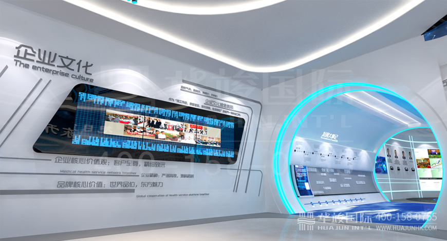 通常企業展廳建設費用包括設計、施工、設備三大塊的費用,根據展廳建設公司的項目承接實力和企業領導人意向,可以選擇單做設計、或者單做施工或采購設備,每一塊所需費用的計算標準也有不同。比如華竣國際可承接包括設計、施工、科技設備在內的一體化全定制服務。