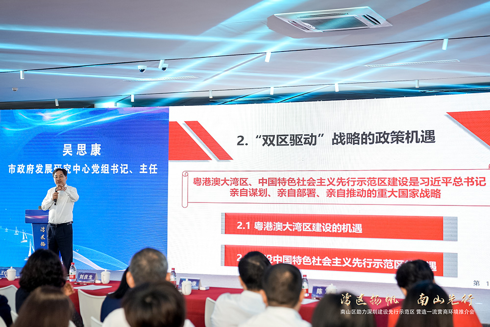 吳思康主任在演講中指出,南山區政府積極推動經濟高質量發展,緊抓粵港澳大灣區、建設先行示范區“雙區驅動”戰略機會,竭力營造穩定公平透明、可預期的國際一流法治化營商環境,彰顯了為深圳建設中國特色社會主義先行示范區貢獻南山力量的信心、努力和決心。