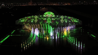 劇院廣場(chǎng)上,大劇院、小劇院和青年劇院的正面會(huì)連接成三面環(huán)抱式大型全景屏幕,為觀眾帶來(lái)全方位的沉浸式體驗(yàn)。