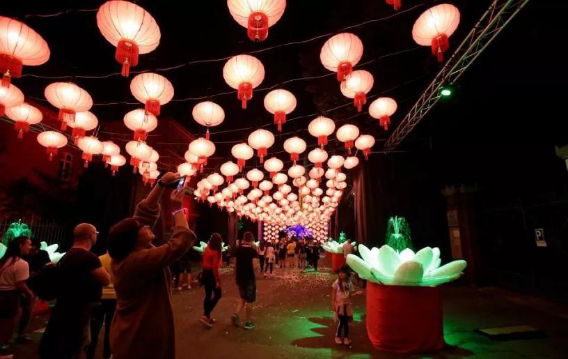 波蘭托倫當(dāng)代藝術(shù)中心在去年舉辦了“荊風(fēng)楚韻,璀璨中華”——紀(jì)念中國(guó)改革開(kāi)放四十周年圖片展,今年的燈光節(jié)上也出現(xiàn)了不少中國(guó)元素,如紅燈籠、蓮花等。