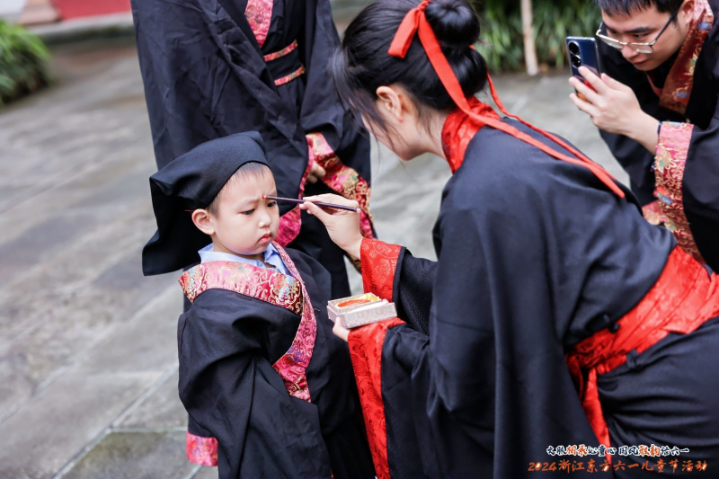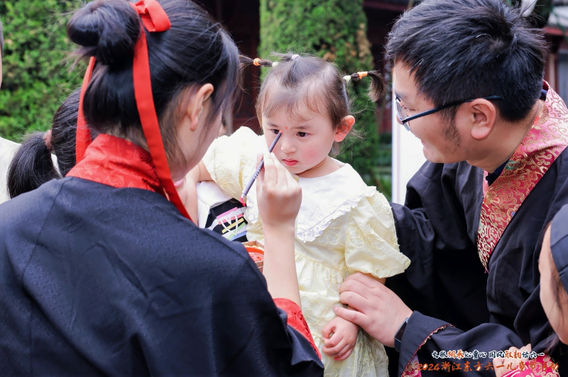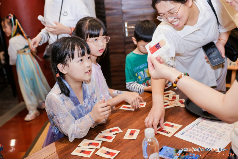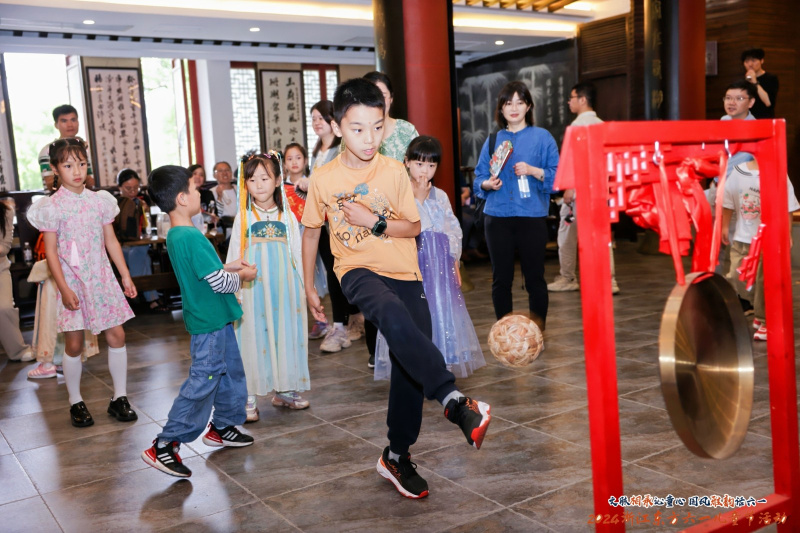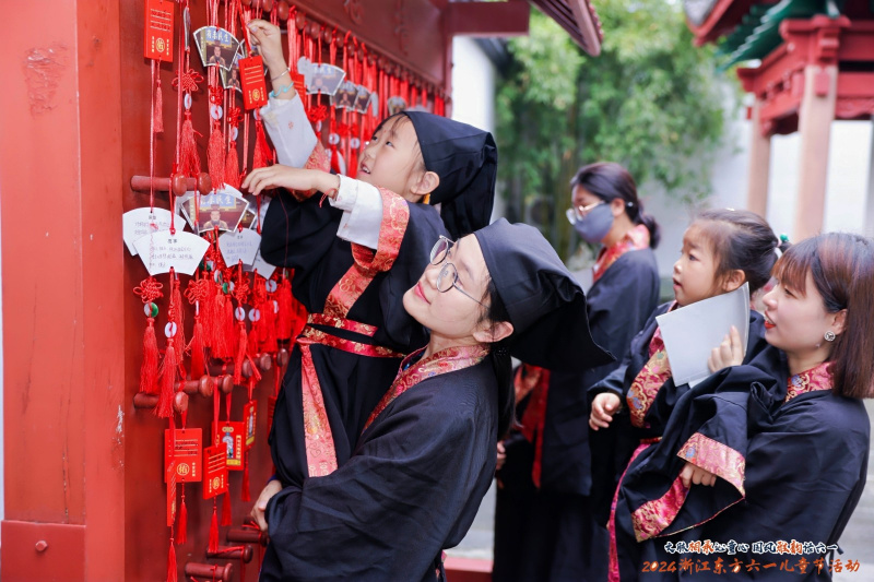 在國學(xué)成長儀式中,職工親子身著漢服,通過國學(xué)老師教導(dǎo),學(xué)習(xí)正衣冠、跨泮池、點朱砂等東方禮制,引導(dǎo)孩子知禮懂禮、樂學(xué)向善;通過叩拜孔子、誦國學(xué)經(jīng)典等莊重儀式,感悟仁義禮智信;通過向父母行三揖禮,表達孩子對父母養(yǎng)育教習(xí)的感恩之情。禮畢,職工親子共同在祈愿牌上寫下心愿,在孔廟放飛初心和夢想?,F(xiàn)場還設(shè)置了國潮趣玩游戲區(qū),孩子們在蹴鞠、投壺、旋轉(zhuǎn)陀螺游戲中大展敏捷身手,在“詩詞飛花令”挑戰(zhàn)里溫故知新、以詩會友。
