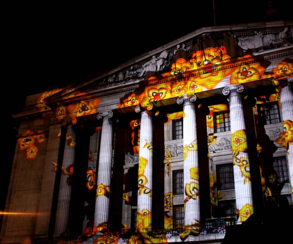 3D Mapping投影技術作為一種新興的新媒體技術,是全球先進的投影技術;它以建筑外表為媒介,以虛擬現實技術、裸眼3D動畫制作為手段,通過光影的巧妙組合,配合建筑物本身的線條和棱角,再結合投影影像立體交互,真假虛實結合,在夜間為觀眾奉上超乎想象的震撼視聽效果。